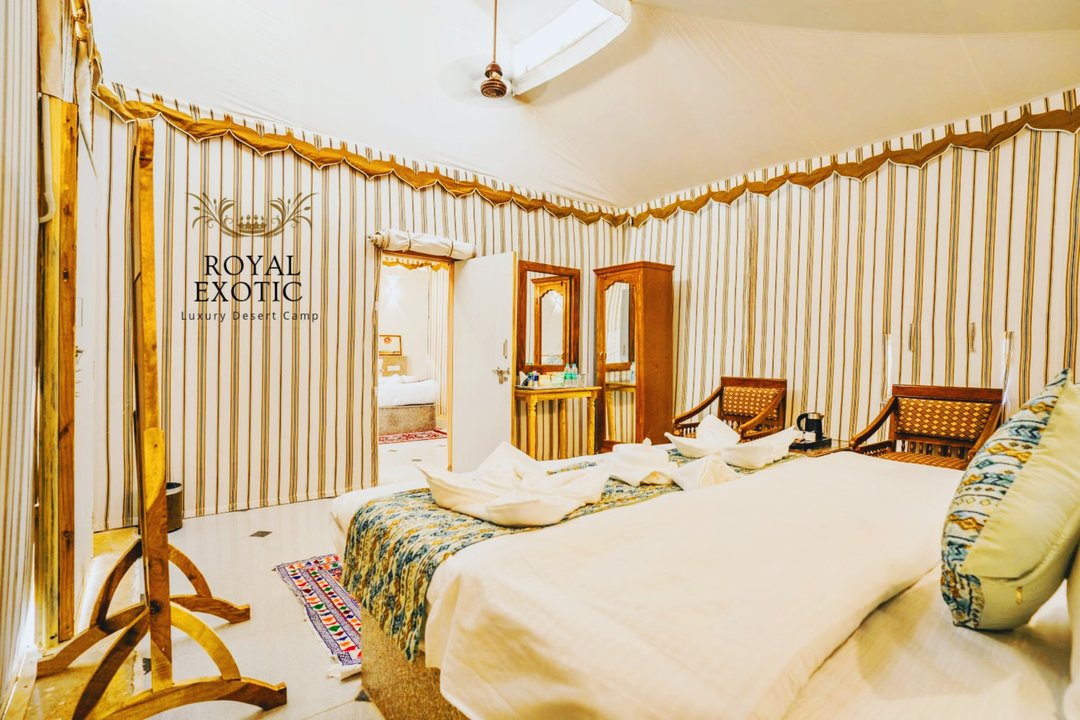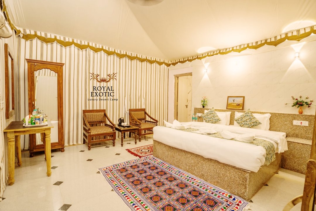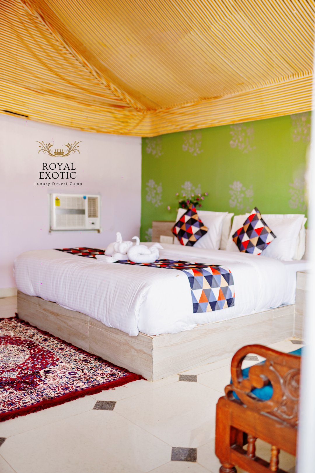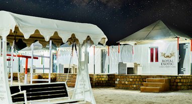 Welcome to Royal Exotic Luxury Desert Camp, your perfect getaway to the golden sands of Rajasthan! Located near the stunning Sam Sand Dunes, our camp offers an unforgettable stay in luxury Swiss tents, blending royal comfort with authentic desert charm. Whether you’re seeking a romantic escape, family adventure, or cultural retreat, our camp is among the best desert camps in Jaisalmer. Enjoy warm Rajasthani hospitality, mesmerizing folk performances, thrilling camel and jeep safaris, and candlelight dinners under the stars. With all modern amenities, our camp stands as a top-rated Jaisalmer desert resort, offering scenic views, peaceful ambiance, and a royal lifestyle in the heart of the desert.
